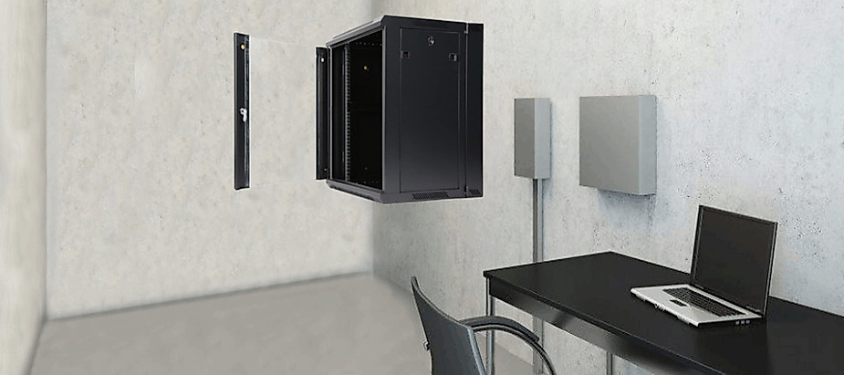 Kabinet yang dipasang di dinding tertutup: perlindungan habuk yang kuat, perlindungan perlanggaran dan perlindungan terhadap akses tanpa kebenaran, sesuai untuk menyimpan peralatan rangkaian kritikal.
